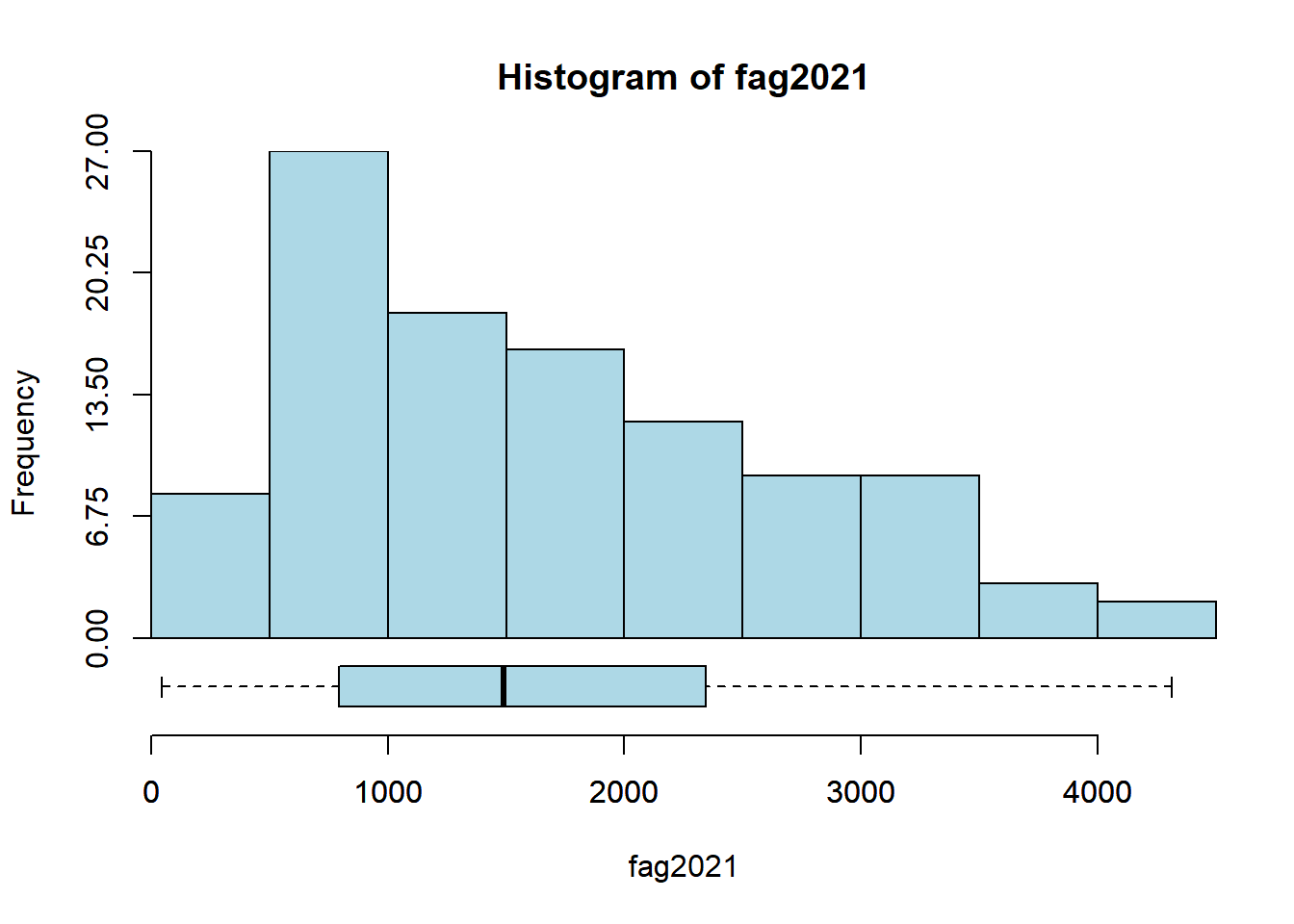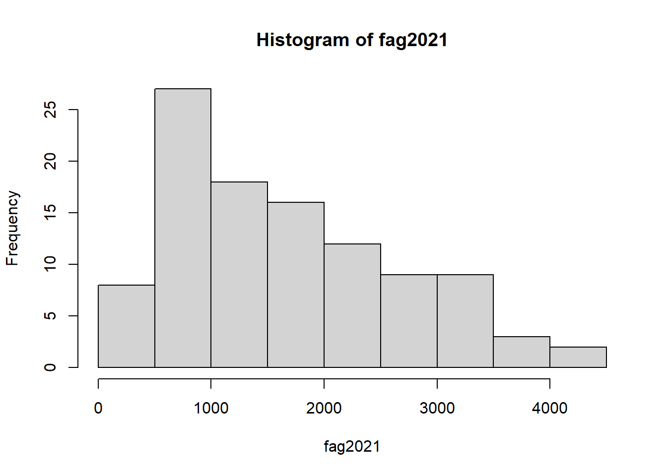 fag2021 <- fagito2021$Total.food.expenditureΑκολούθως κάνουμε τα ιστογράμματα (βλ. ενότητα Ιστόγραμμα) για να οπτικοποιήσουμε τα δεδομένα μας: