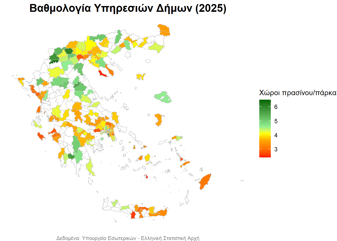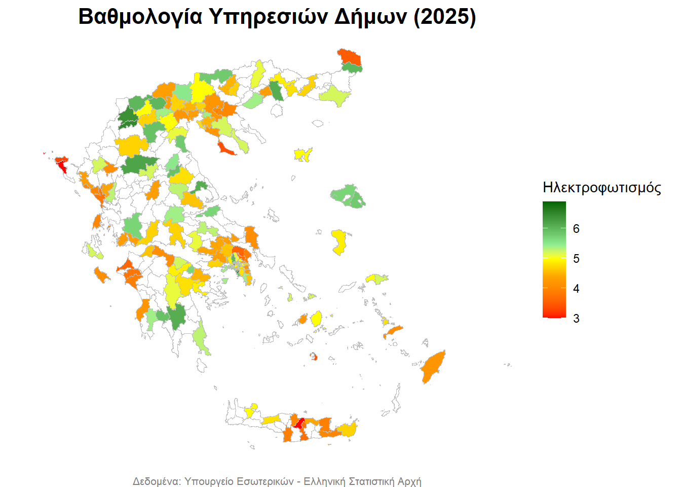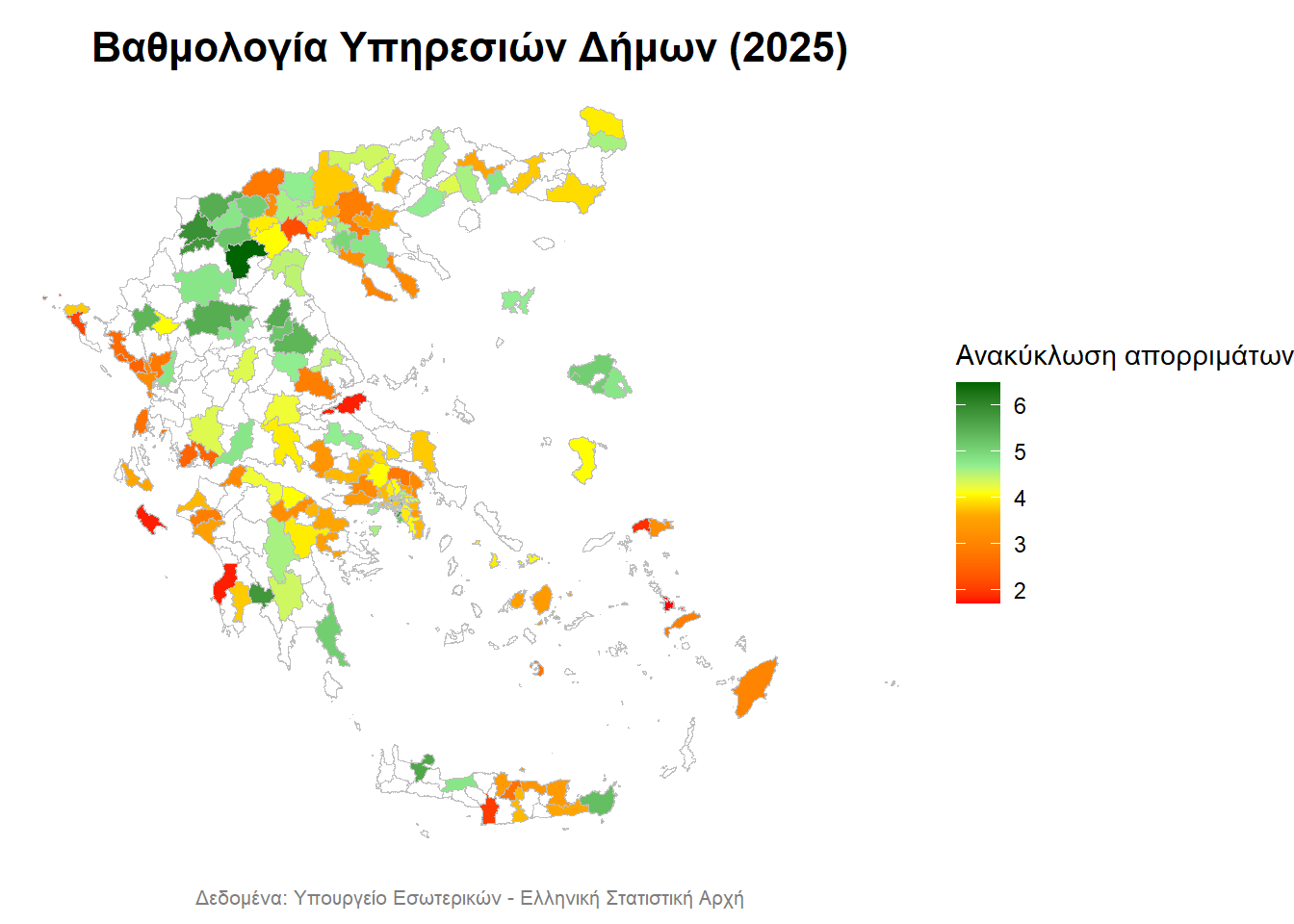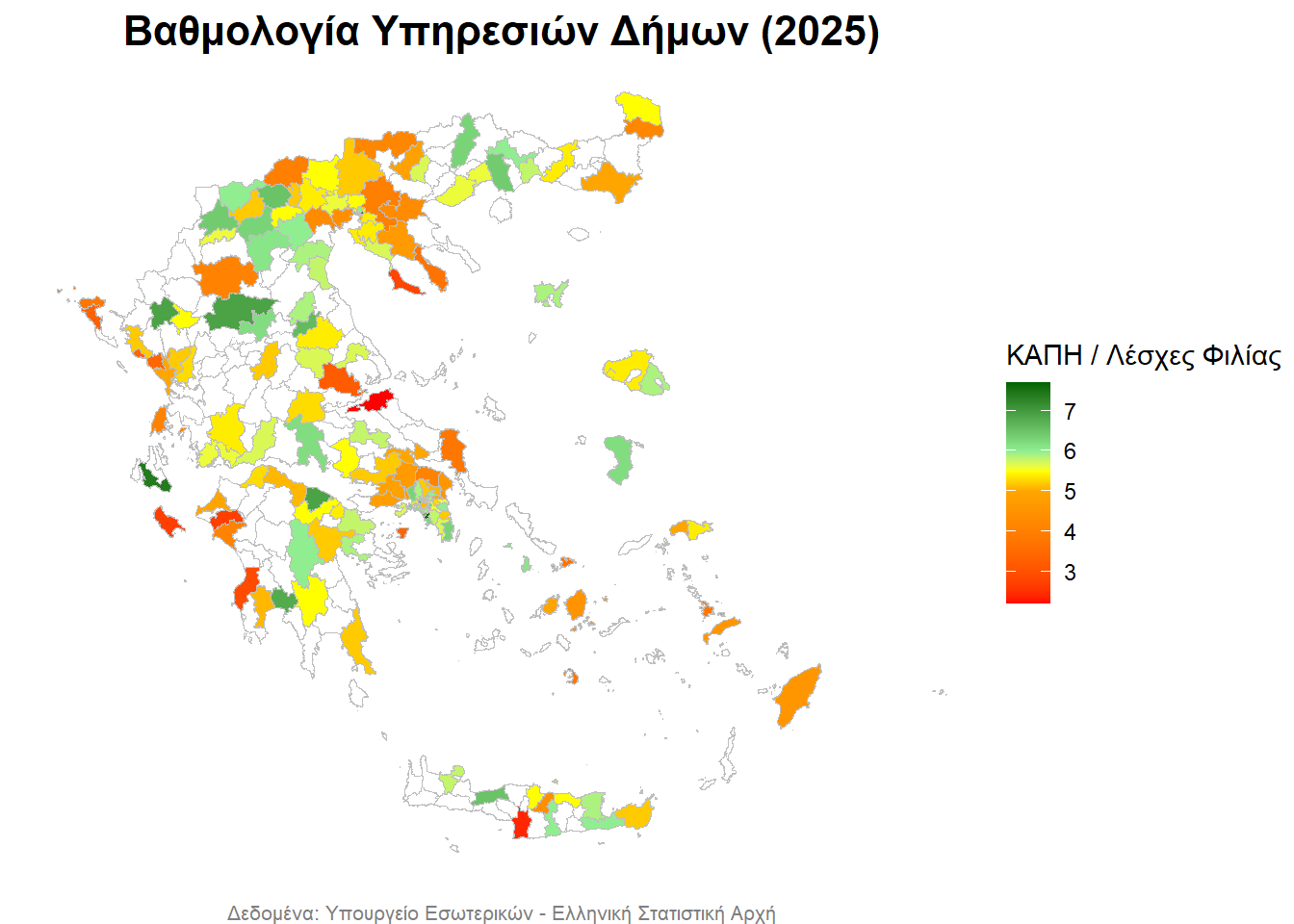 Με άλλα λόγια, το πορτοκαλί, το κίτρινο και το αχνό πράσινο απαρτίζουν το κεντρικό 50% των Δήμων.