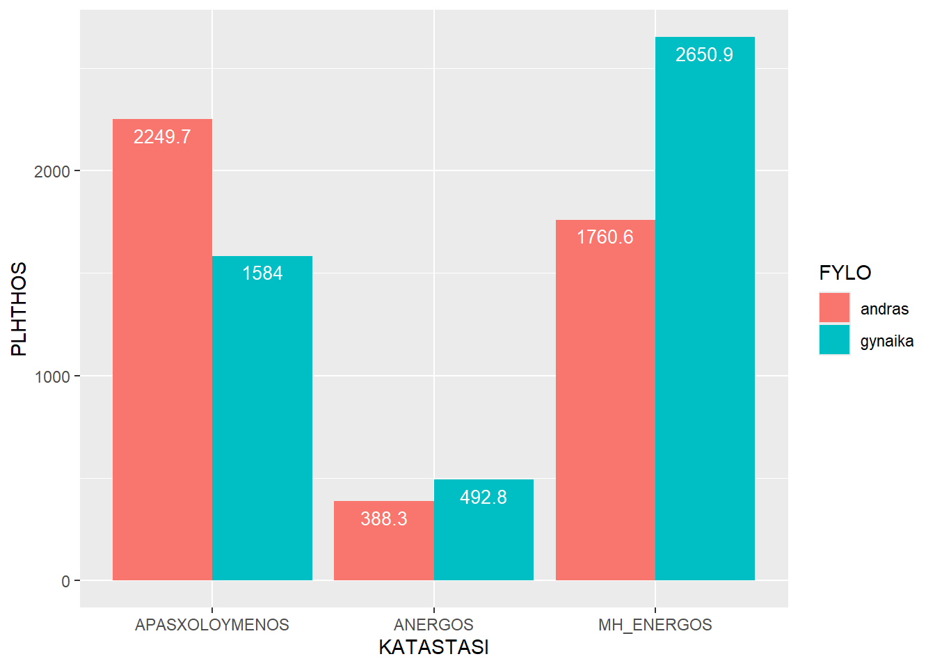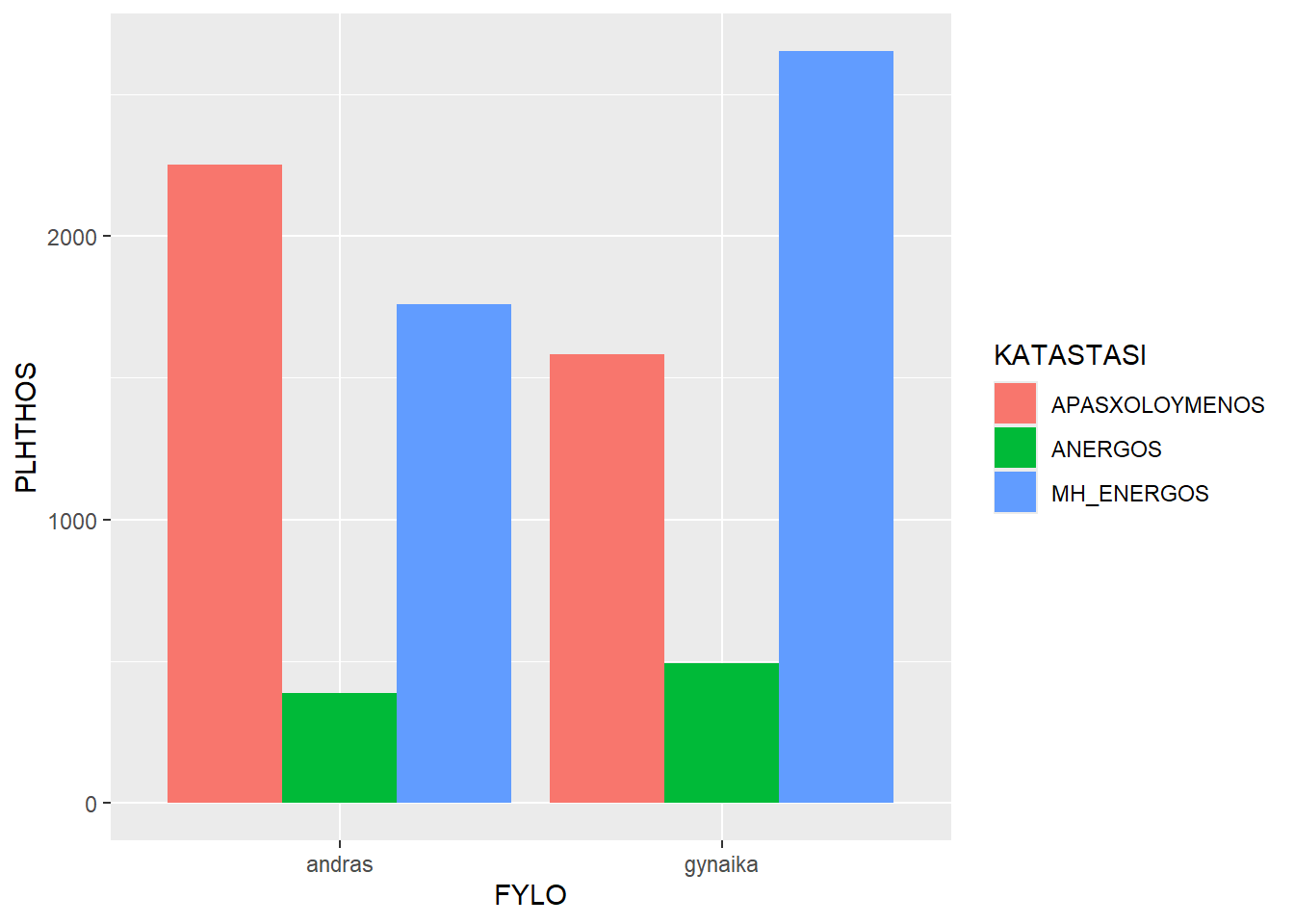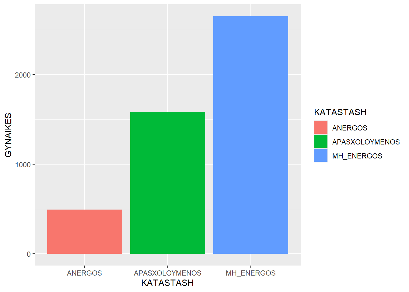 GynApasxMultyCol2 <- ggplot(data=ApasxAntistr, aes(x=KATASTASH, y=GYNAIKES, fill=KATASTASH))