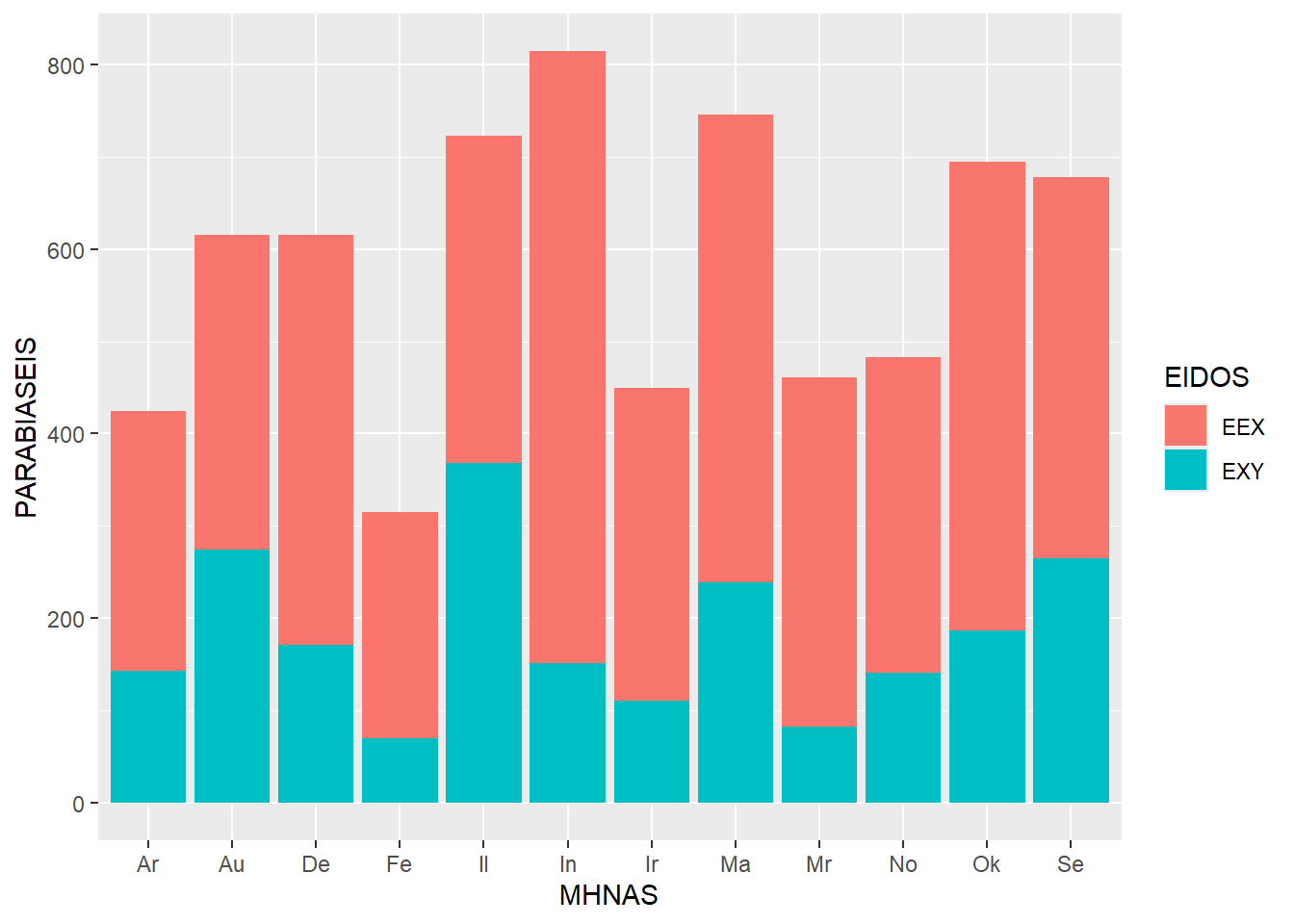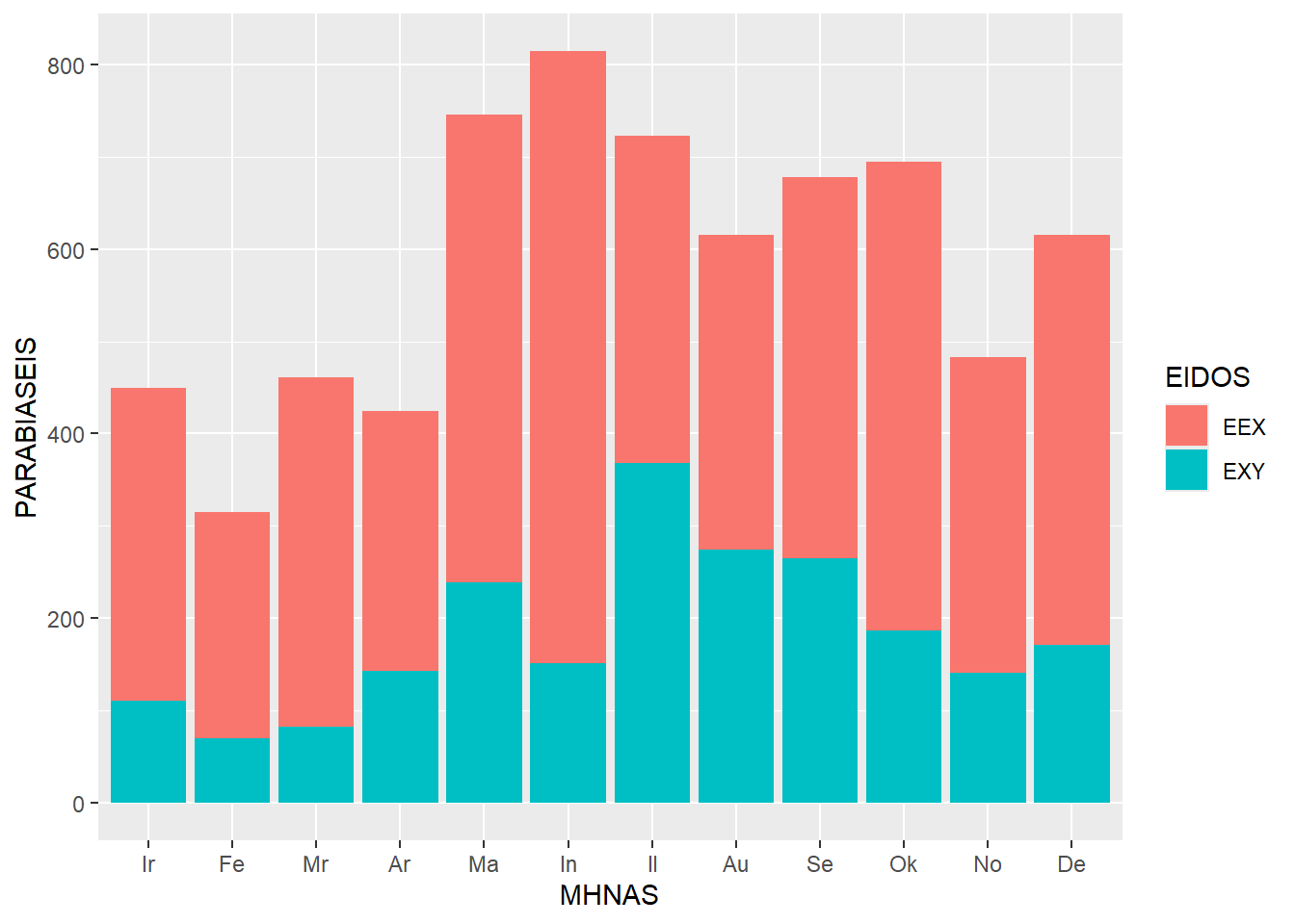 parabiaseisRab <- ggplot(data=parabiaseis19, aes(x=MHNAS, y=PARABIASEIS, fill=EIDOS))