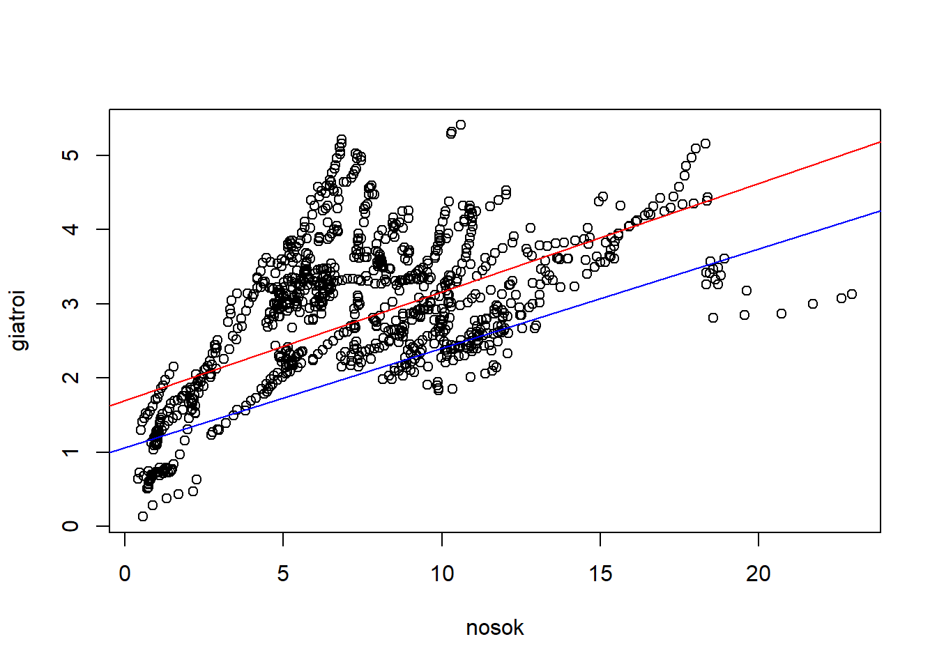 abline(rq(giatroi ~ nosok, tau = 0.15), col="blue")