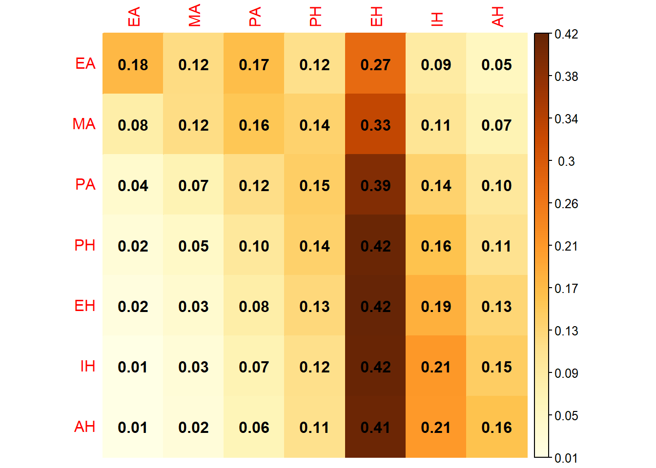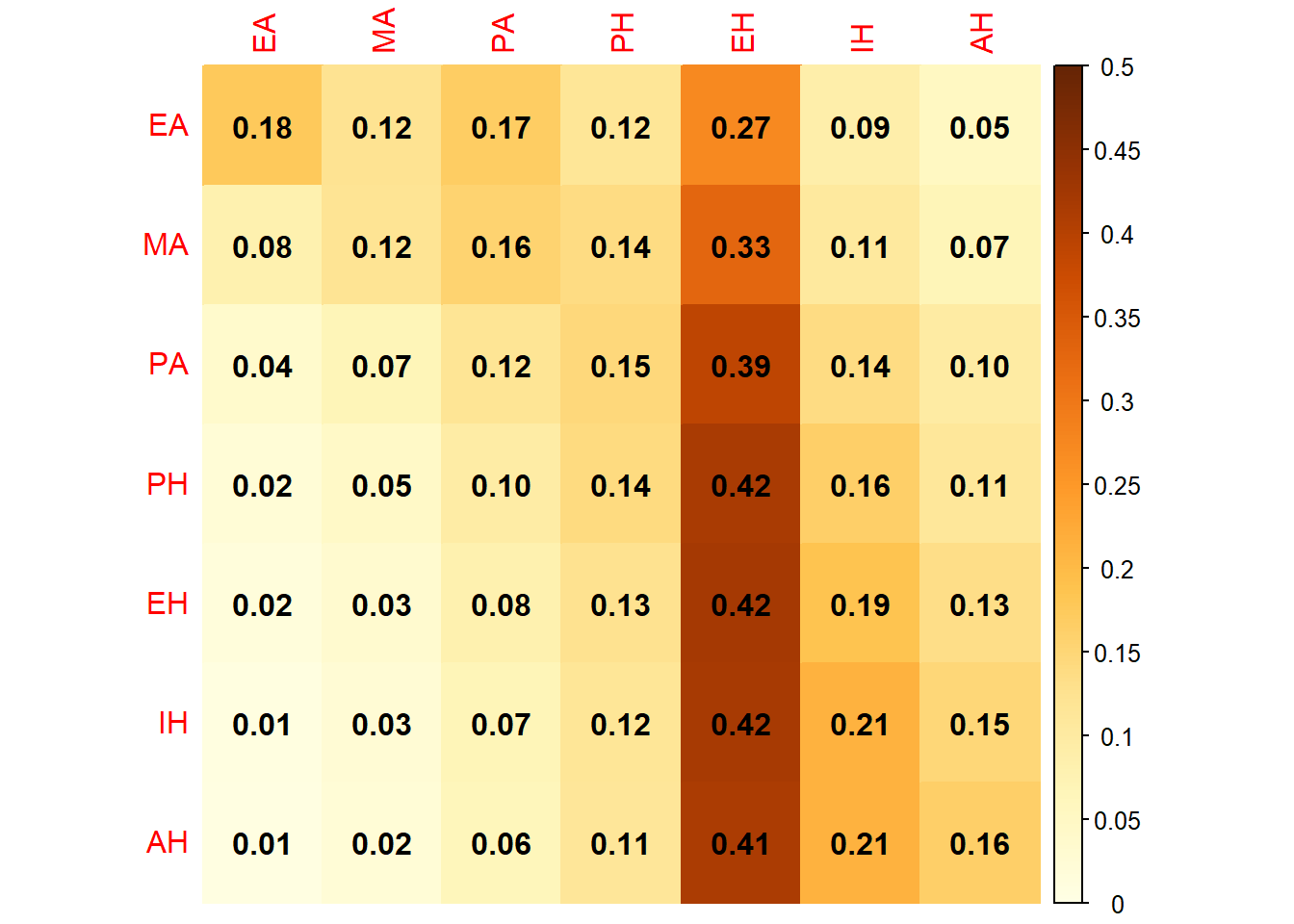 EA <- c(0.388, 0.107, 0.035, 0.021, 0.009, 0.000, 0.000)