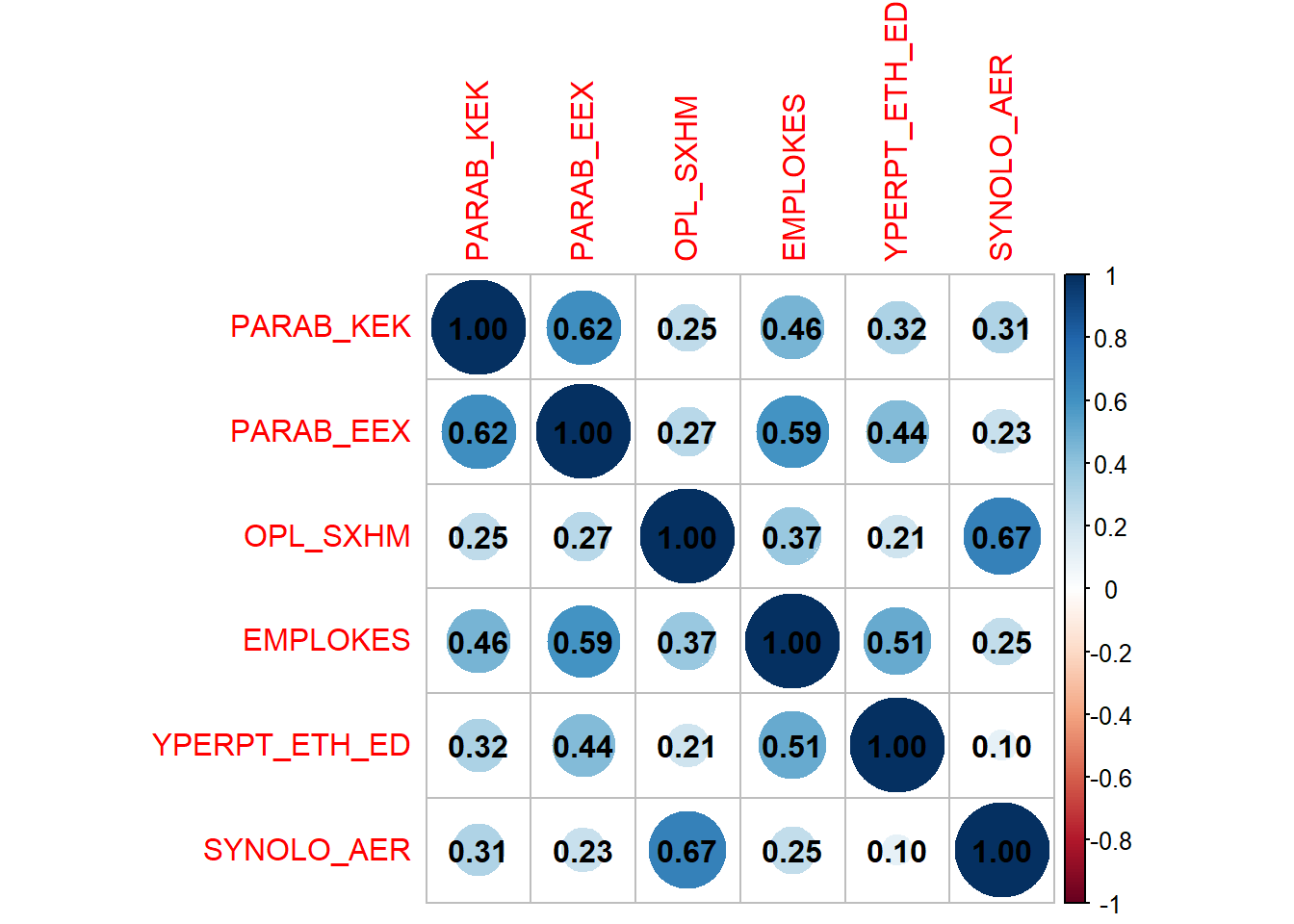 pinakas_sysxetisis(enaerParab[,3:8], "kendall")