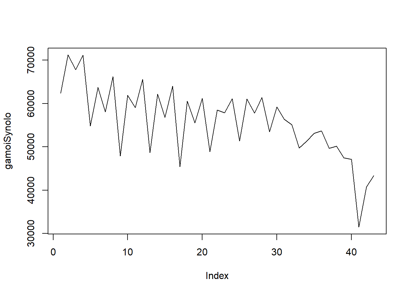 gamoiSynolots <- ts(gamoi$GamoiSynolo, start = 0, freq=4)