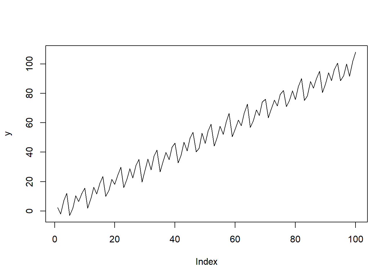 y <- x+6*sin( (2*pi/3) * x)-4*cos( (2*pi/6) * x)+rnorm(100)