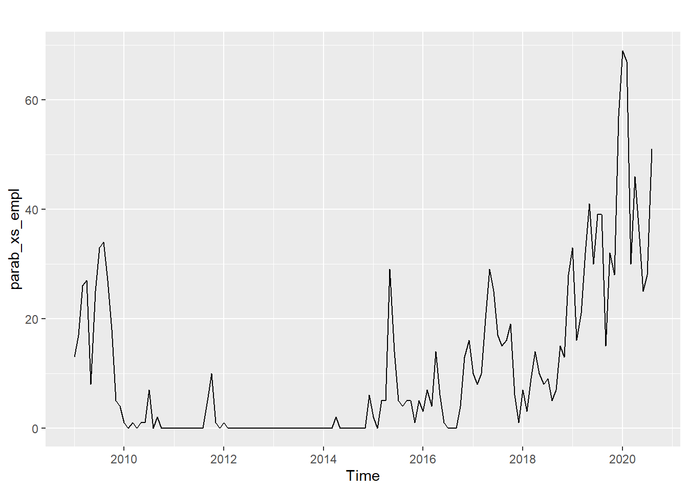 parab_xs_empl <- ts(enaerParab[ , 6], start = c(2009, 1), frequency = 12)