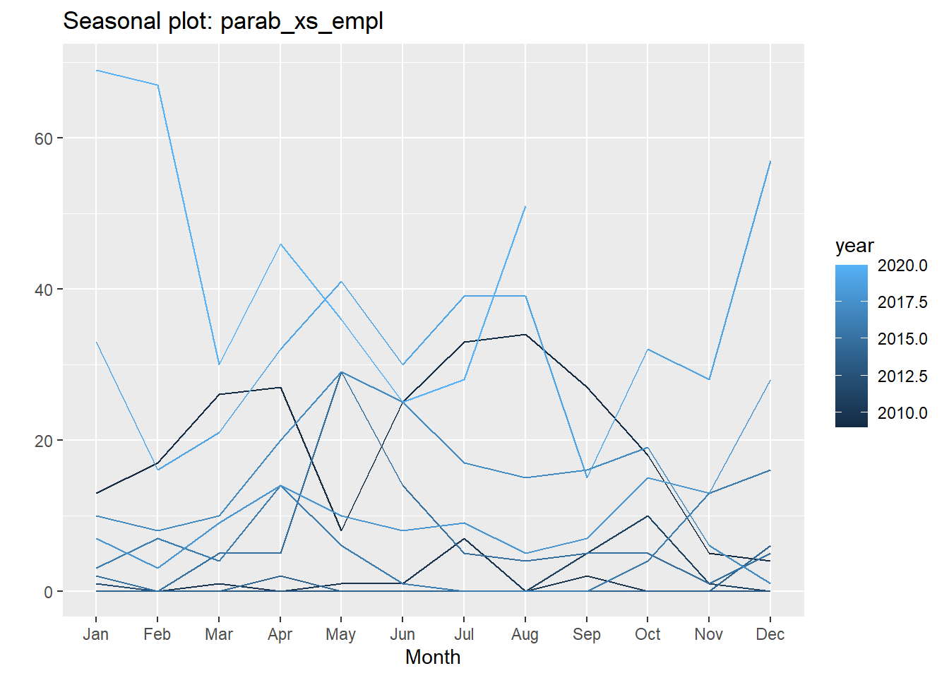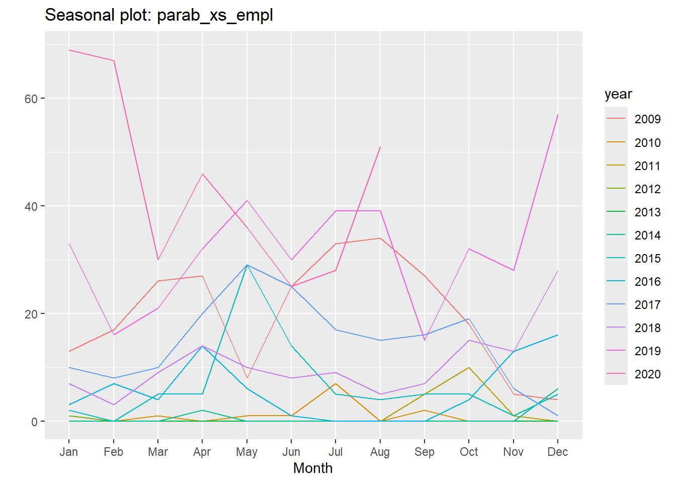 ggseasonplot(parab_xs_empl)