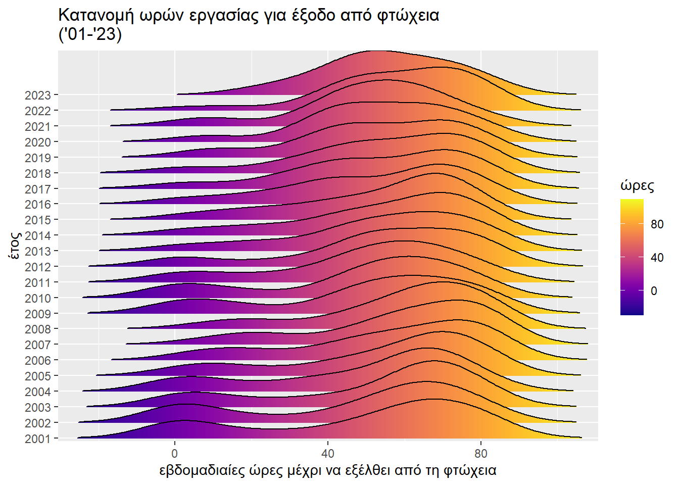 Σε πρώτη φάση θα ερευνήσουμε την εξέλιξη της κατάστασης στην πορεία του χρόνου. Πώς αλλάζει ο κόπος που καταβάλει κάποιος για να βγει από τη φτώχεια; Συγκεκριμένα, συμβαίνει κάτι διαφορετικό παγκοσμίως στο 2023;