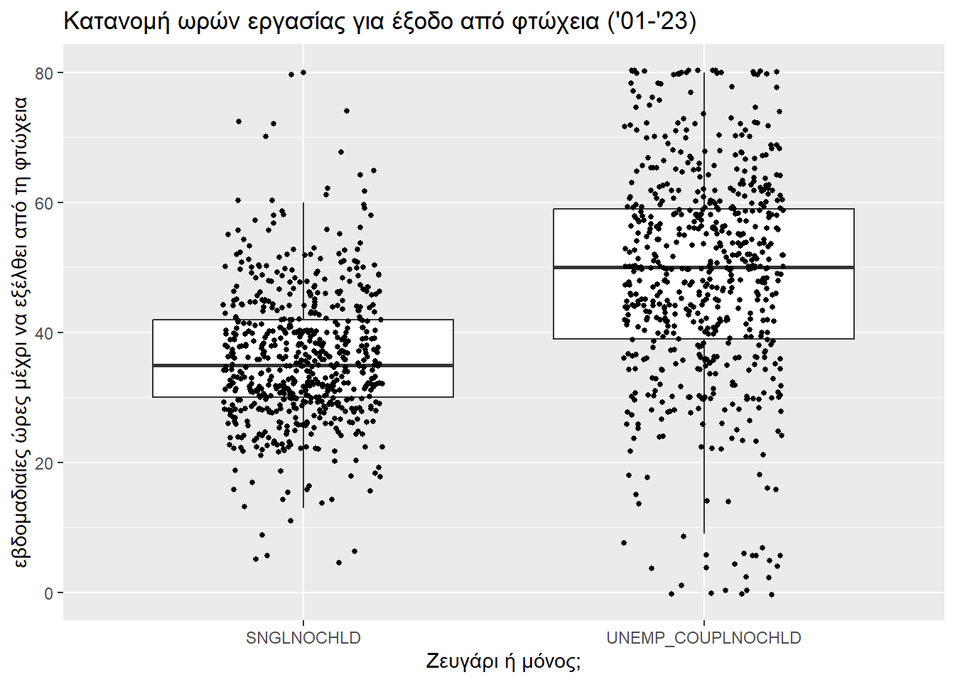 Σε τούτη την ενότητα θα εξετάσουμε αν επιδρά στη δυσκολία εξόδου από τη φτώχεια το να είσαι ζευγάρι ή μόνος.